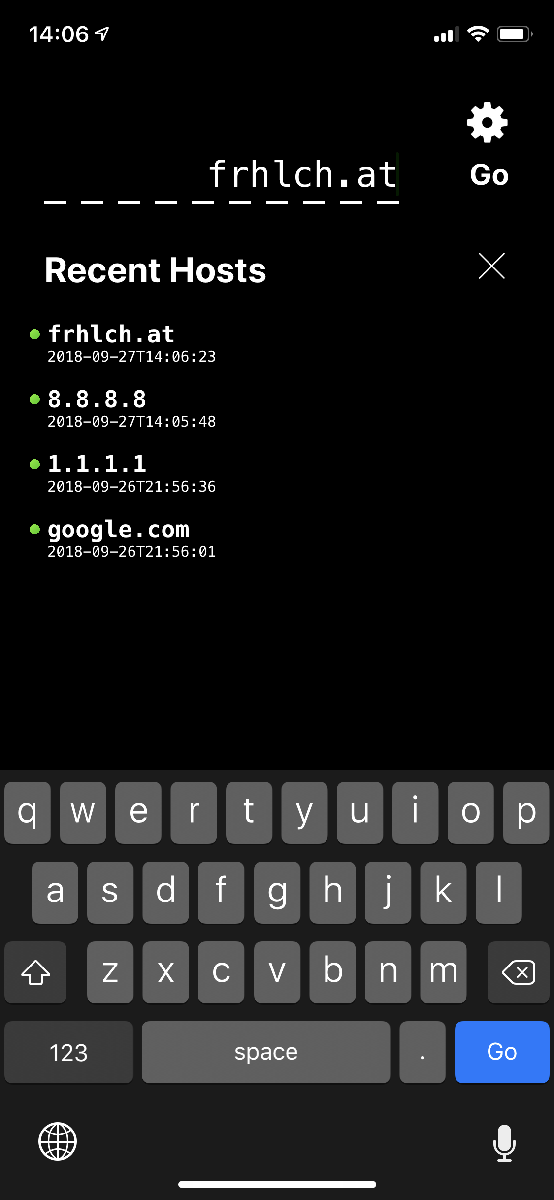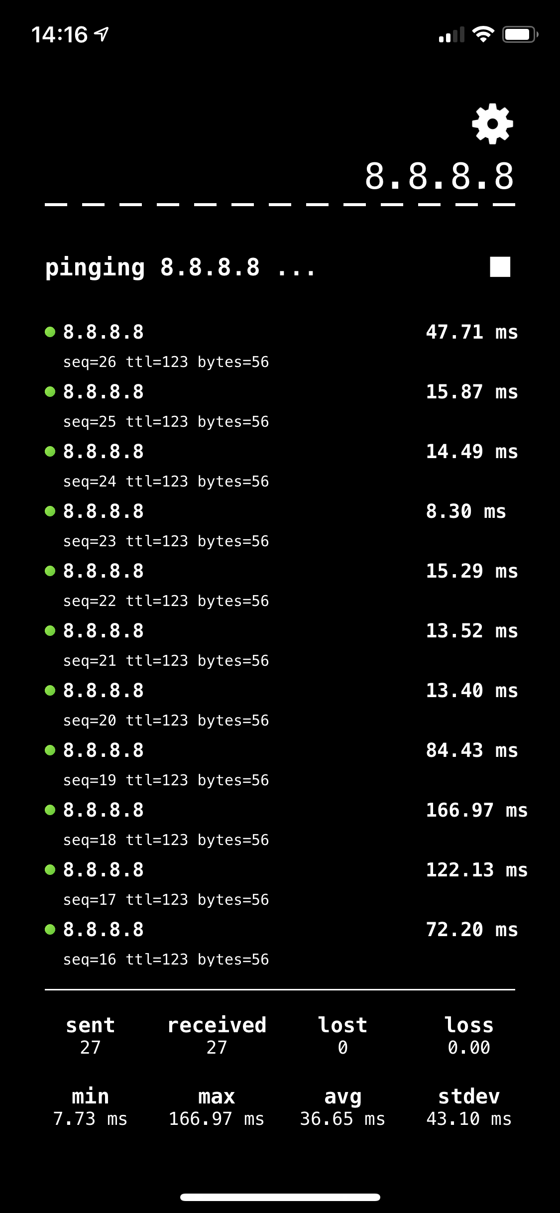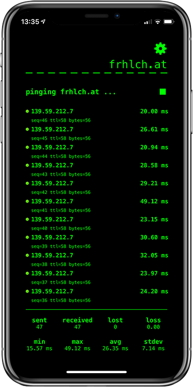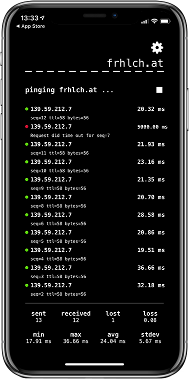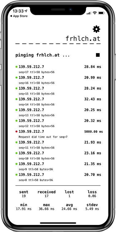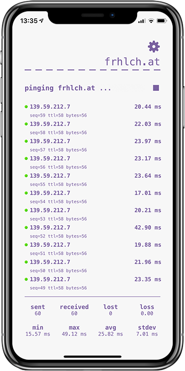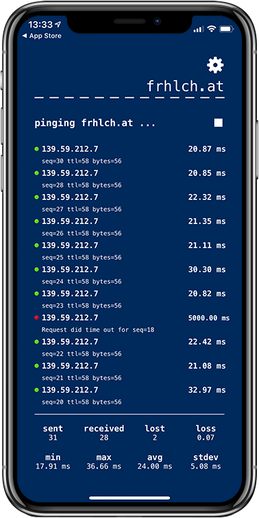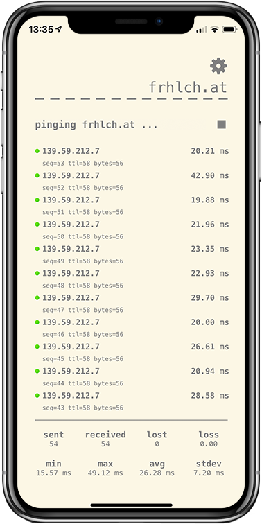 Open Ping and get and idea how fast your mobile connection is. Simply enter an IP address or an hostname and press Go.